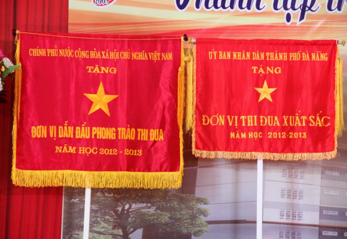 Niềm vui nối tiếp niềm vui. Trường còn vinh dự được nhận cờ đơn vị thi đua xuất sắc của Ủy ban Nhân dân Thành phố Đà Nẵng tặng trong năm học 2012 – 2013.