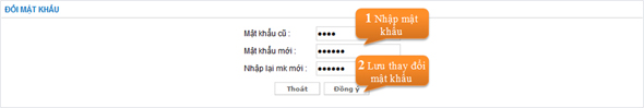 - Sau khi đăng nhập lần đầu tiên, hệ thống bắt buộc người sử dụng phải đổi mật khẩu trước khi sử dụng, mật khẩu phải có độ dài tối thiểu 6 ký tự.