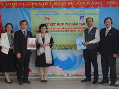 Lễ ký kết hợp tác giữa Trường Cao đẳng Bách Khoa Đà Nẵng và Trường Đại học Xây dựng Miển trung – Phân hiệu Đà Nẵng. Thông qua thỏa thuận hợp tác, Trường Cao đẳng Bách Khoa sẽ có cơ hội mở rộng đáng kể quy mô tuyển sinh, năng lực đào tạo trong lĩnh vực xây dựng và kiến trúc