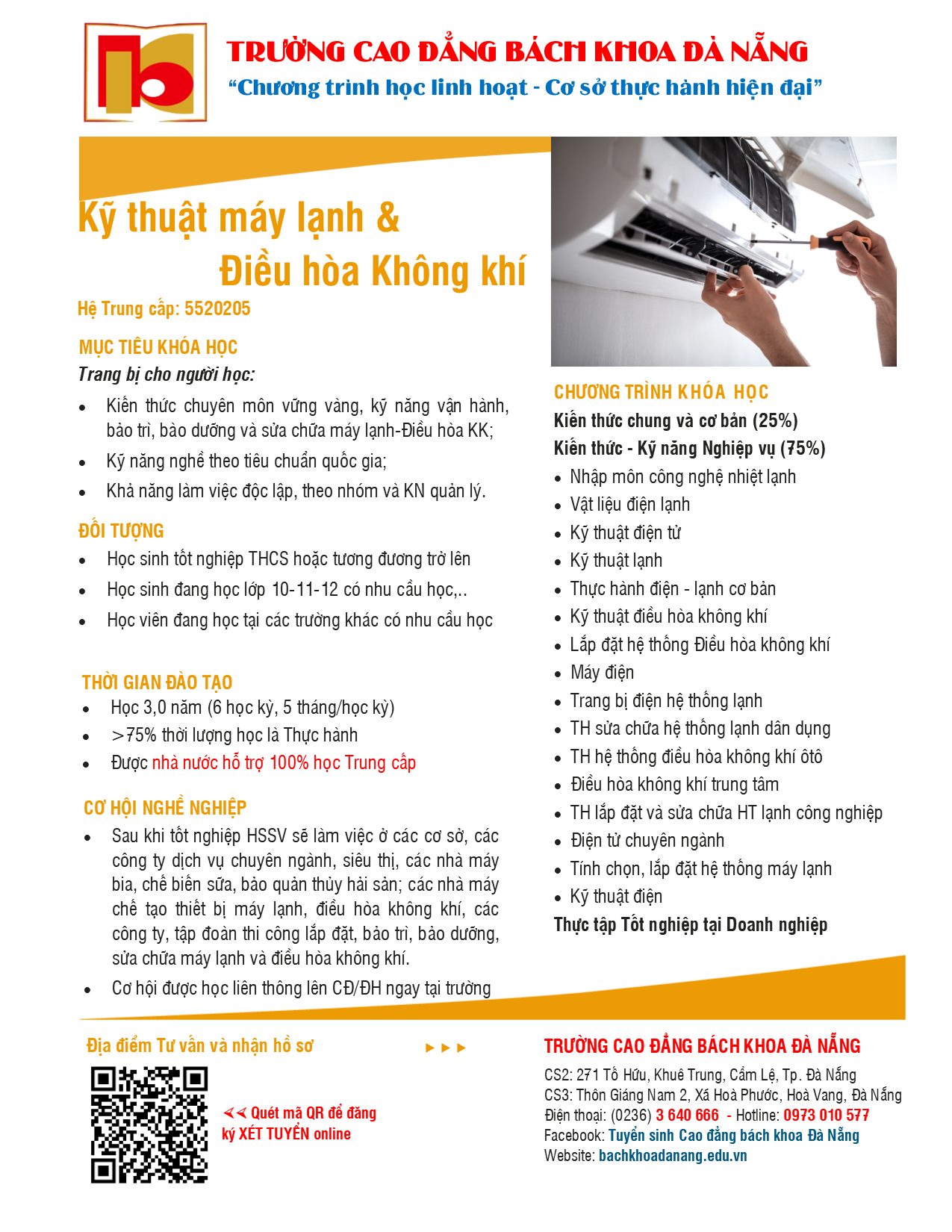 Ngành Trung cấp Kỹ thuật Máy lạnh và ĐHKK
